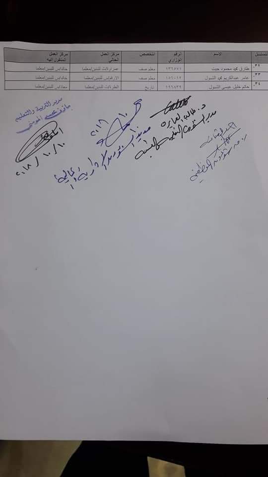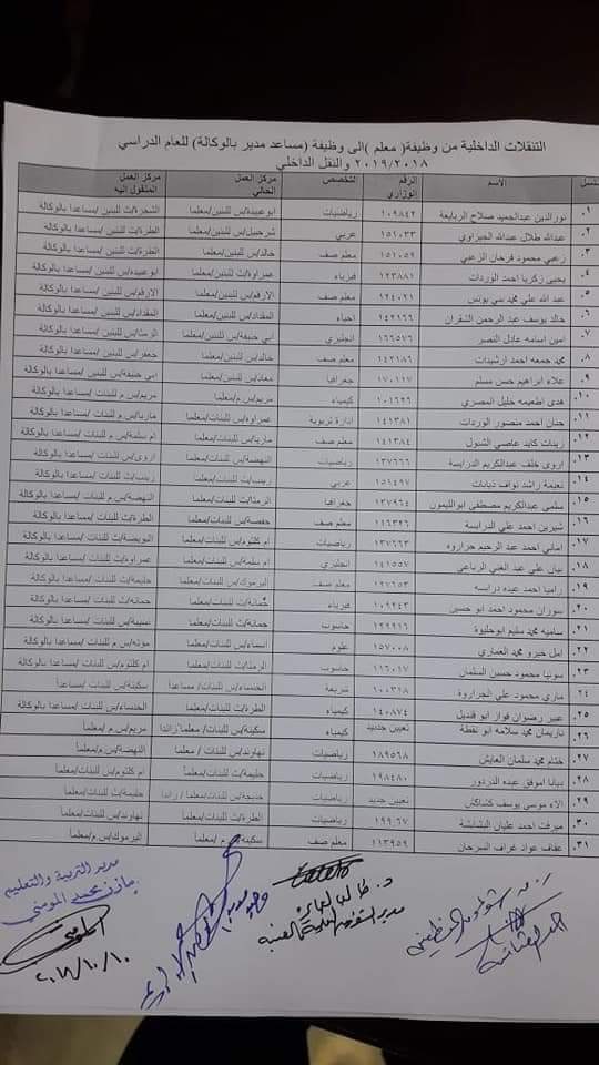 وكالة المرفأ الإخبارية : قرر مدير التربية والتعليم للواء الرمثا مازن المومني وبناء على تنسيب مدير الشؤون الادارية والمالية اجراء تنقلات داخلية من وظيفة معلم الى وظيفة مساعد مدير بالوكالة اعتبارا من يوم الاحد الموافق 14/10/2018 على النحو التالي :