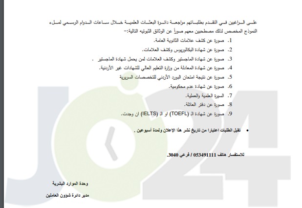 تعلن جامعة البلقاء التطبيقية عن حاجتها الى الايفاد في بعثات علمية خارجية للحصول على درجة الدكتوراه من حملة درجة الماجستير مقدمه من جامعة جويلف الكندية في التخصصات التالية: