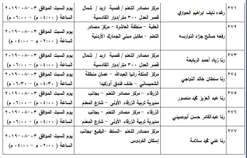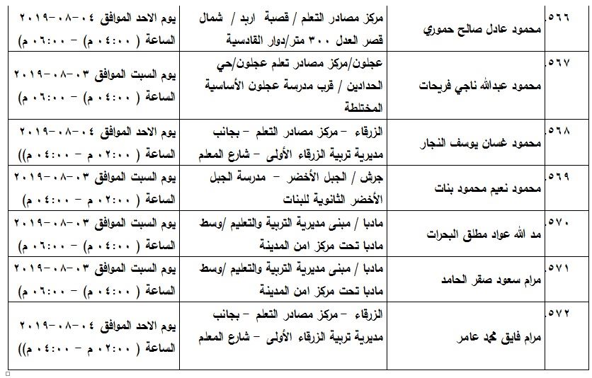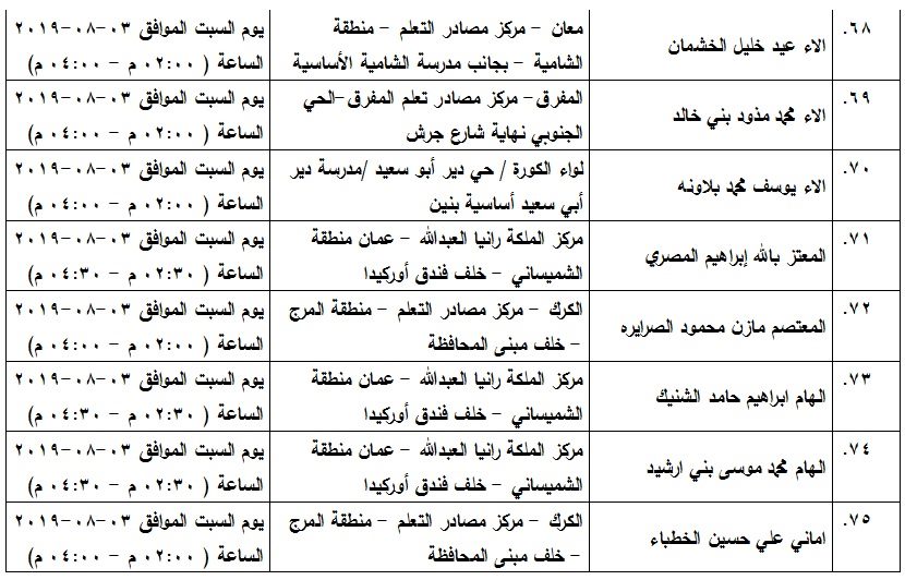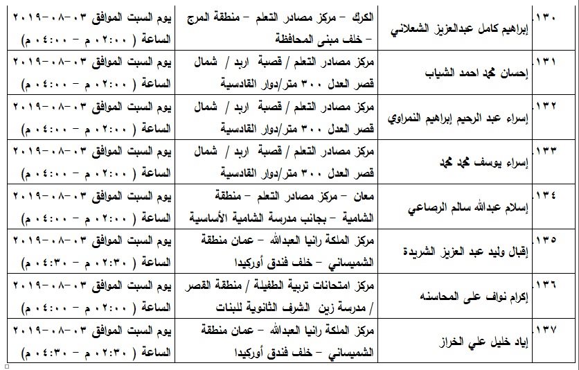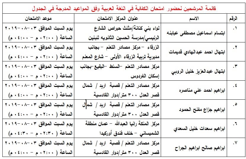 شاهد بالاسماء .. مدعوون لامتحان الكفاية في اللغة العربية On أغسطس 1, 2019 Share 1٬016 المرفأ :أعلن مجمع اللغة العربية الأردني قائمة المرشحين لحضور امتحان الكفاية في اللغة العربية وفق المواعيد المدرجة في الجدول Share 1٬016