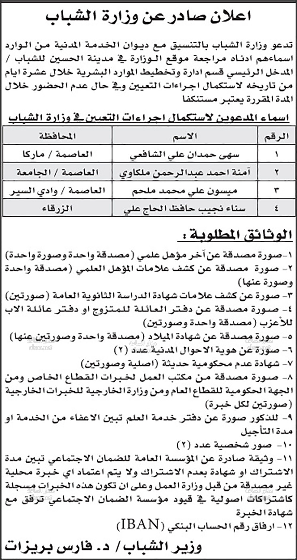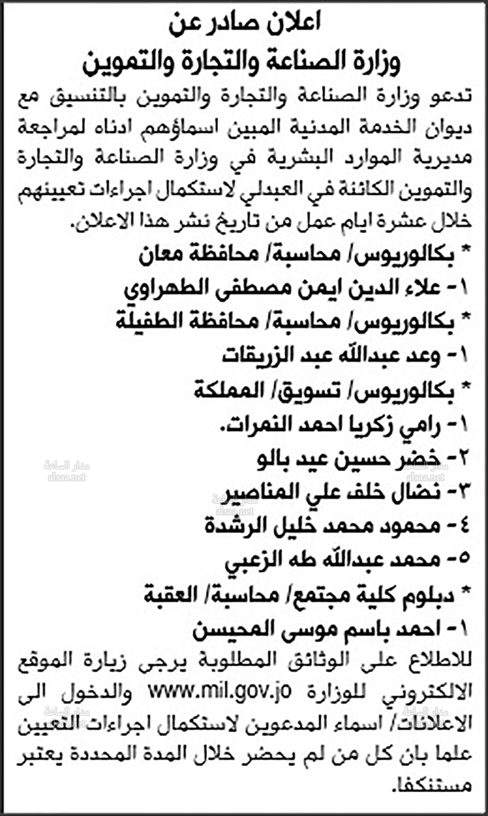 للتعيين في وزارتي الشباب والصناعة والتجارة وديوان الخدمة (أسماء)