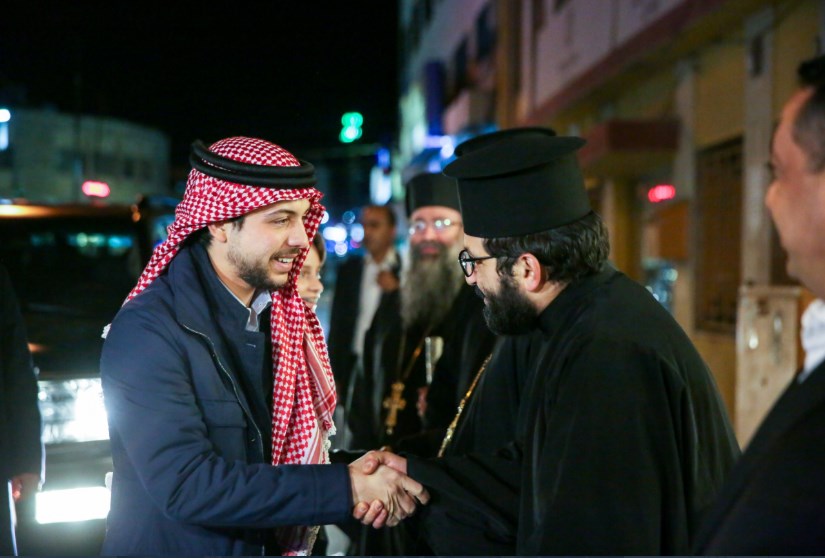 ولي العهد يشارك أبناء الطوائف المسيحية في إضاءة شجرة عيد الميلاد في مادبا (صور)