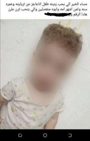 القصة الكاملة للطفل الذي عرض للتبني: والده متوارٍ عن الانظار ووالدته لا تريد رعايته لرغبتها بالزواج من آخر
