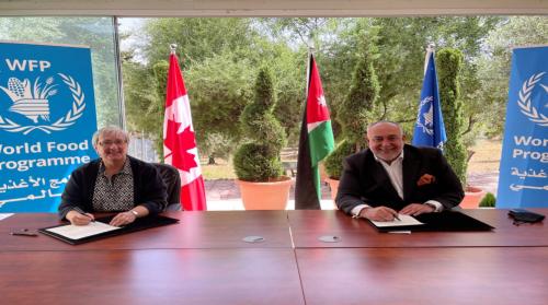 ووقع الاتفاقية التمويلية في مقر البرنامج في عمان، الأربعاء، السفيرة الكندية في عمان دونيكا بوتي، وممثل برنامج الأغذية العالمي والمدير القطري في الأردن ألبرتو كوريا مينديز.