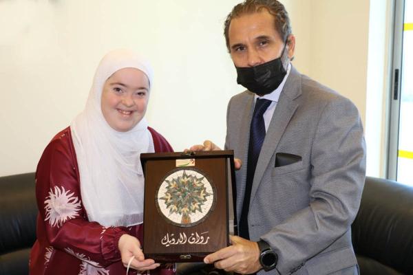 وهنأ سمو الأمير، روان على قدراتها على الحفظ السريع، مثمنا دور أسرتها في دعمها، رغم أنها لم تلتحق في اي مؤسسة تعليمية خلال السنوات الماضية، وبرغم الصعوبات والتحديات التي يواجهها الشباب والشابات ذوي الإعاقة بشكل عام، وذوي الإعاقة الذهنية بشكل خاص، في الحصول على تعليم ذي جودة عالية.