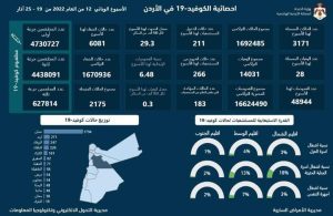 المرفأ… أعلنت وزارة الصحة التقرير الاسبوعي لحالات كورونا (كوفيد-19) في الأردن