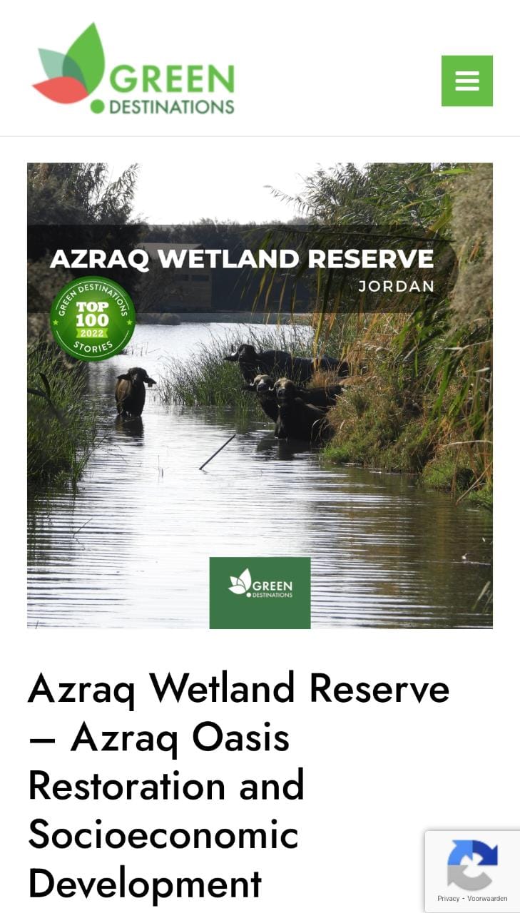 وقال مدير عام الجمعية السيد فادي الناصر أن الفوز جاء تتويجا لجهد مشترك بين كافة كوادر الجمعية ومحبيها وداعميها وشركائها خاصة كوادر محمية الأزرق المائية، كما أنه اعتراف دولي وعالمي بالدور الريادي والمستدام الذي تلعبه المحمية أضافة الى تنفيذها للعديد من برامج السياحية البيئية والمشاريع الاقتصادية والاجتماعية .