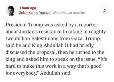 وقال العشماوي ان موقع الجزيرة نسب للملك قوله : ” سوف نري كيف يمكن تحقيق ذلك ( نقل الفلسطينيين ) لمصلحة الجميع ” .