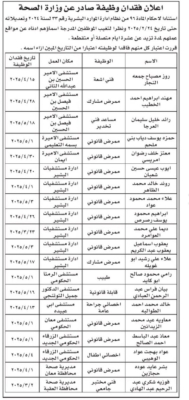 وزارة الصحة تعلن فقدان موظفين لوظائفهم – أسماء