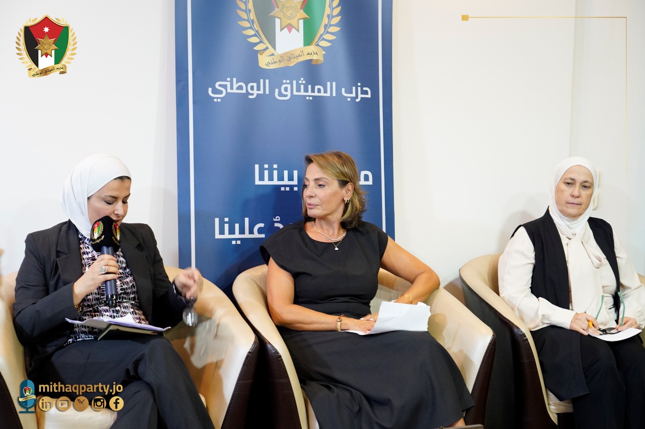 من جانبها أكدت مساعد الأمين العام لشؤون تمكين المرأة والأسرة السيدة ميادة شريم أن الحزب السياسي والوطني والوسطي يضع المرأة في صلب استراتيجيته، باعتبارها ركيزة أساسية في تحقيق الاستدامة، مشددة على أن حزب الميثاق الوطني يعمل على تمكين المرأة كعضو فاعل في المجتمع.