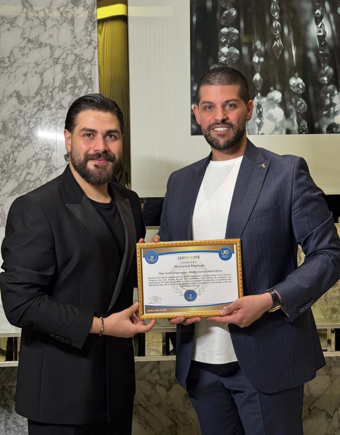 المنظمة الدوليّة لحقوق الإنسان وشؤون اللاجئين (IOHR) تختار الفنّان محمّد المجذوب سفيراً للشباب في الشرق الأوسط وشمال أفريقيا