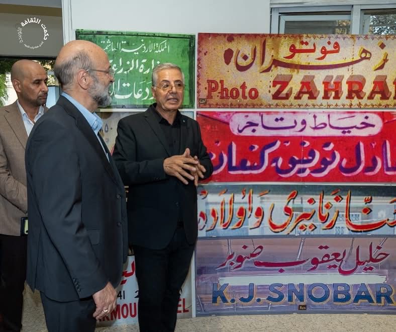 المرفأ.. قامت مؤسسة “حكمت الثقافة” مساء السبت 11 أكتوبر 2025، وبرعاية خاصة من دولة رئيس الوزراء الأسبق الدكتور عمر الرزاز، وبحضور مندوب وزير الثقافة الفنّان عبدالكريم الجرّاح مدير مسرح أسامة المشيني، بتكريم مؤسّس وأمين “متحف آرمات عمّان” السيد غازي خطاب، في حفل احتضن فعالياته مسرح أسامة المشيني؛ وتابعه نخبة كبيرة من المثقفين والمهتمين من الخطاطين والزوار، وأدار فعالياته الشاعر محمد خضير.. ضمّ الحفل معرضًا لنسخ من اللوحات الإعلانية، حمل اسم “العودة إلى الأمام – ذاكرة مدينة وتكريم”.