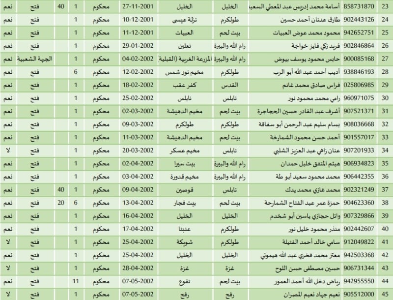 مكتب إعلام الأسرى يعلن أسماء المحررين في صفقة طوفان الأقصى