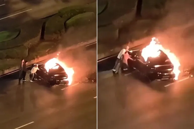 وأظهرت مقاطع فيديو التقطها شهود عيان على وسائل التواصل الاجتماعي ألسنة اللهب تتصاعد من مقدمة السيارة بينما كان المارة يحاولون فتح الأبواب وإنقاذ السائق المحاصر، لكن الأنظمة الإلكترونية أغلقت الأبواب بإحكام بعد توقف التيار الكهربائي.