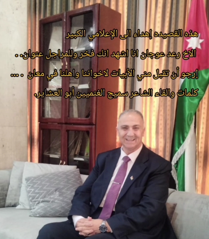 بالفيديو الشاعر سميح الغنميين يهدي الإعلامي رعد عوجان واهلنا في معان هذه الأبيات