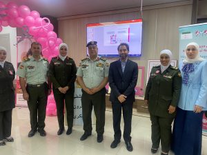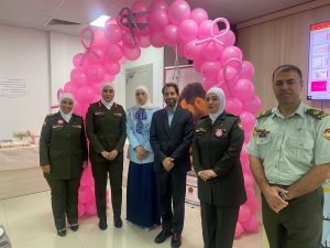 وشهدت الفعالية حضورًا مميزًا من إدارة وكوادر المستشفى، وعلى رأسهم مدير مستشفى اللطرون العسكري العميد الطبيب محمد أبو زيد، والمساعد لشؤون التمريض العقيد سناء حكمت خريس، والرائد الطبيب أنس أبو رمان، والرائد إسراء حمدان القطامين، والرائد عائشة حامد الحنيطي، الذين أكدوا جميعًا على أهمية نشر الوعي حول مرض سرطان الثدي وضرورة الكشف المبكر لما له من أثر كبير في الوقاية والعلاج.