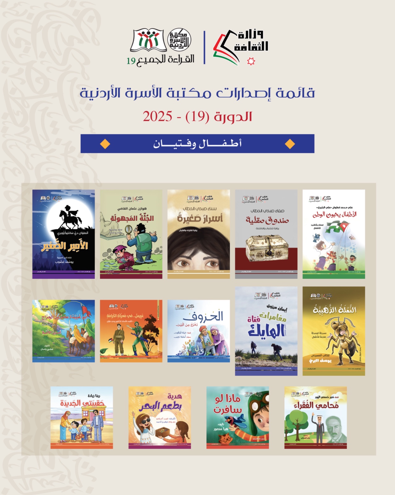 برعاية رئيس الوزراء.. “الثقافة” تطلق الدورة الـ19 لبرنامج مكتبة الأسرة الأردنية من “الريشة”