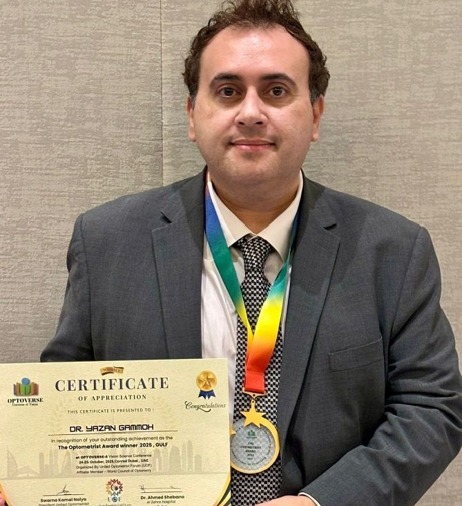 د. يزن قموه من عمان الأهلية يفوز بجائزة ” أخصائي البصريات 2025 – منطقة الخليج “