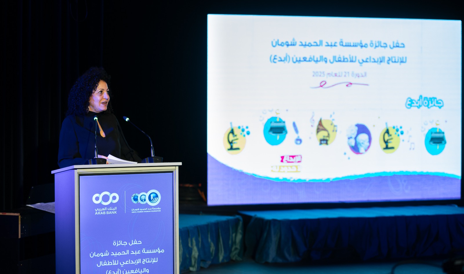 الرئيسة التنفيذية للمؤسسة فالنتينا قسيسية، أكدت في كلمتها خلال الحفل، أن جائزة “أبدع” التي تنفذها مؤسسة عبد الحميد شومان، ذراع البنك العربي للمسؤولية الثقافية والاجتماعية، جاءت إيمانا من المؤسسة بأن الإبداع ليس ترفا، بل حاجة إنسانية وتربوية تسهم ببناء شخصية الطفل وتنمية قدراته على التعبير والفهم.