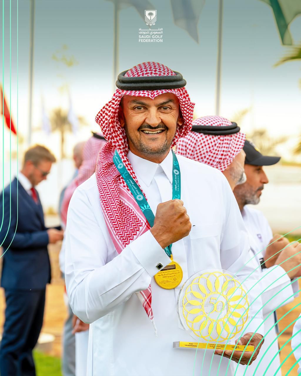 إلى جانب ممثلي الاتحاد العربي للجولف، الذين شاركوا في تسليم الكؤوس للفائزين.