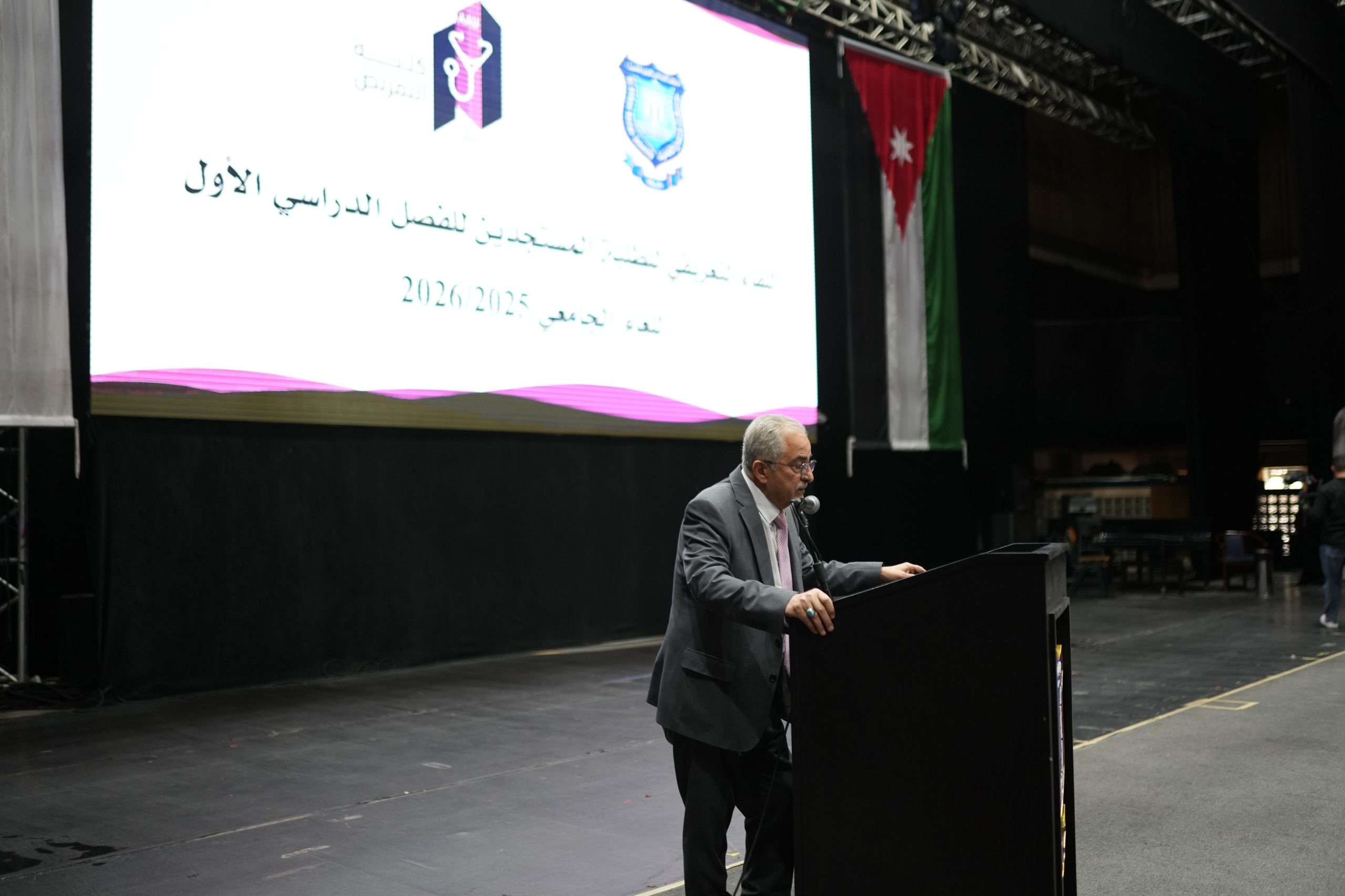 وتضمن الحفل كلمات ترحيبية بدأت بكلمة رئيس الجامعة الأستاذ الدكتور ساري حمدان الذي رحب بالطلبة الجدد، مؤكدًا حرص الجامعة على توفير بيئة تعليمية محفزة وداعمة للتميز والإبداع.