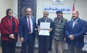 وفي نهاية الأمسية تفضل رئيس الاتحاد العدوان و الاستاذ الجعافرة رئيس منتدى البيت العربي وأمينة الصندوق ا. سوسن المهتدي بتقديم شهادات التكريم تقديرا للمشاركين في الامسية. كما وثمن الحضور جهود اللجنة الثقافية ومقررها الشاعر عبدالباسط الكيالي ، على جهودهم الكبيرة في خدمة الثقافة والمثقفين ، من كتاب وأدباء أردننا الغالي أردن الهواشم ، ثم التقطت الصور التذكارية لهذه المناسبة.