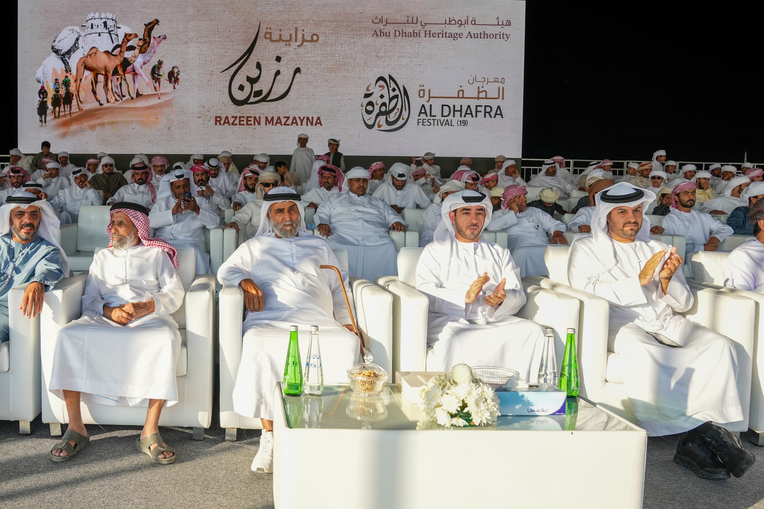 تتويج الفائزين في أشواط الثنايا في مزاينة رزين بمهرجان الظفرة