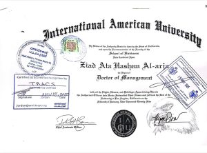 الدكتور المحامي زياد العرجا مبارك الدكتوراه