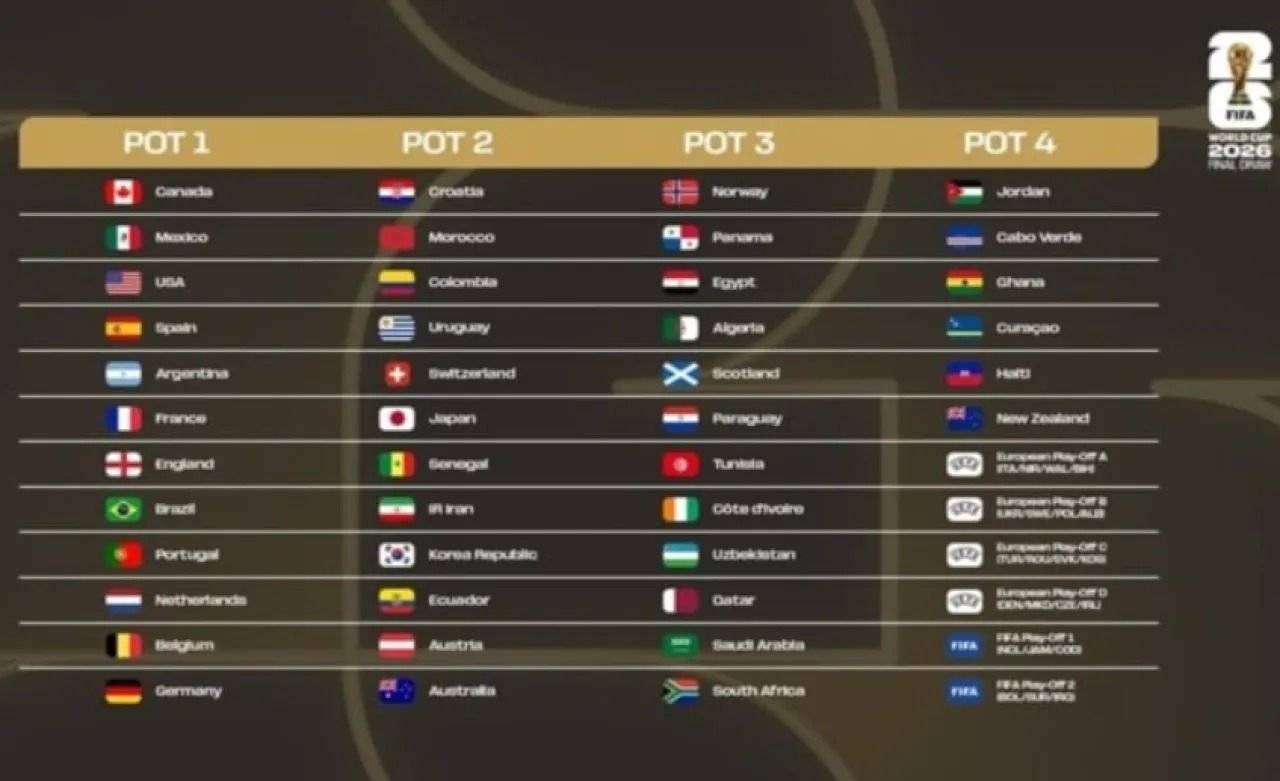 الوعاء الرابع: الأردن، الرأس الأخضر، غانا، كوراساو، هايتي، نيوزيلندا، الفائز بالملحق الأوروبي (المسار A)، الفائز بالملحق الأوروبي (المسار B)، الفائز بالملحق الأوروبي (المسار C)، الفائز بالملحق الأوروبي (المسار D)، الفائز ببطولة الملحق الفيفا (1)، الفائز ببطولة الملحق الفيفا (2).