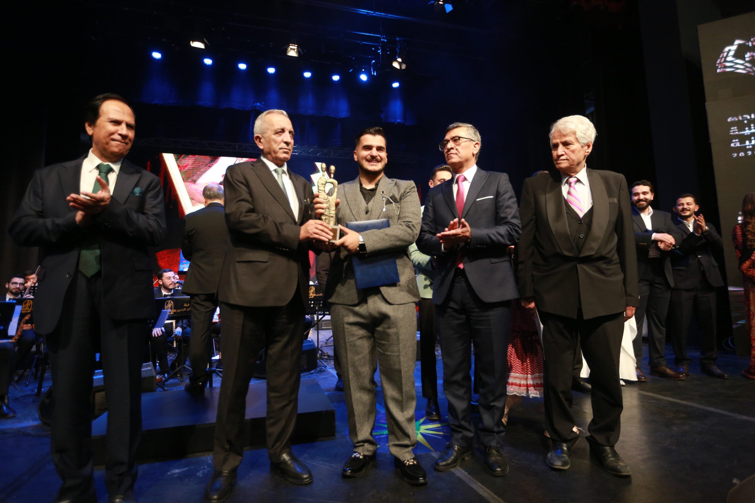 وسلم الرواشدة يرافقه المخرج العبادي والدكتور الدغيمات في حفل المهرجان الذي قدمته المذيعة هيا الدعجة، الجوائز على الفائزين.
