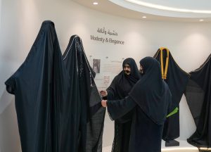 وتحت عنوان “حشمة وأناقة” يعرض الجناح “السويعية” وهي عباءة نسائية تقليدية، ارتبطت بالمرأة الإماراتية، ومنها ما كان يلبس في المناسبات الاجتماعية المهمة مثل الأعياد والأعراس، ومنها ما يلبس في الحياة اليومية، وتُعد من أبرز ملامح الأزياء التراثية القديمة في الإمارات.