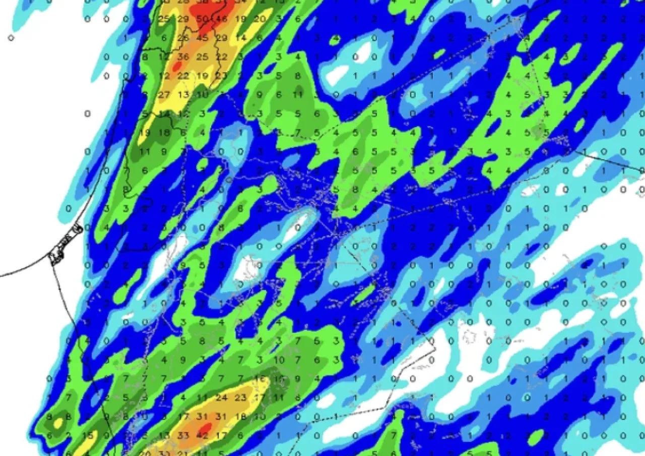 تترافق الحالة بهطول أمطار غزيرة ضمن نطاقات جغرافية ضيقة وبخاصة في أجزاء من جنوب المملكة.
