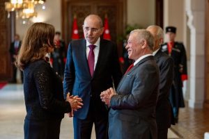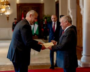 وحضر مراسم تقبل أوراق الاعتماد رئيس الديوان الملكي الهاشمي يوسف حسن العيسوي، ونائب رئيس الوزراء ووزير الخارجية وشؤون المغتربين أيمن الصفدي.