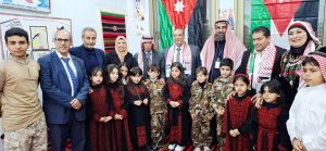 وتزينت المدرسة منذ ساعات الصباح بالأعلام الأردنية وصور جلالة الملك عبدالله الثاني ابن الحسين وسمو ولي عهده المحبوب ، والهاشميون ، فيما اصطفّت طالبات المدرسة بزي الكوفية الأردنية ولباس الكشافة لاستقبال الضيوف بالأناشيد الوطنية والتحيات الأردنية التقليدية.
