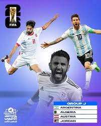 وتلعب الأرجنتين إلى جانب الجزائر التي تظهر للمرة الخامسة في كأس العالم والأردن في ظهورها الأول والنمسا العائدة إلى المونديال بعد غياب طويل في المجموعة العاشرة بالبطولة.