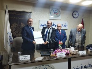 وفي ختام الندوة كرم رئيس الاتحاد الأستاذ عليان العدوان السادة الدكاترة المشاركين في الندوة .