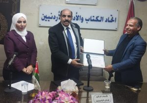 وفي ختام الأمسية، كرم رئيس اتحاد الأدباء والكتاب الأردنيين الشاعر عليان العدوان المحاضر .د فرحان الياصجين والكاتبة ديمه الفاعوري تقديراً لإسهاماتهما العلمية والفكرية، وسط تفاعل ونقاش من الحضور الذي أثرى المحاضرة . والتقطت الصور التذكارية لهذه المحاضرة.