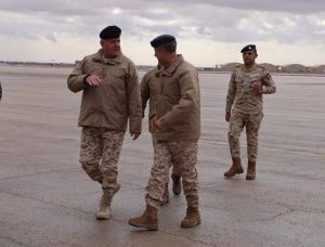 واستهل اللواء الركن الحنيطي جولته بزيارة قاعدة الشهيد موفق السلطي الجوية، حيث كان في استقباله قائد سلاح الجو الملكي.