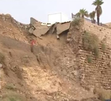 الكرك.. انهيار جزء من المدينة القديمة وجزء من سور القلعة بسبب الأمطار الغزيرة