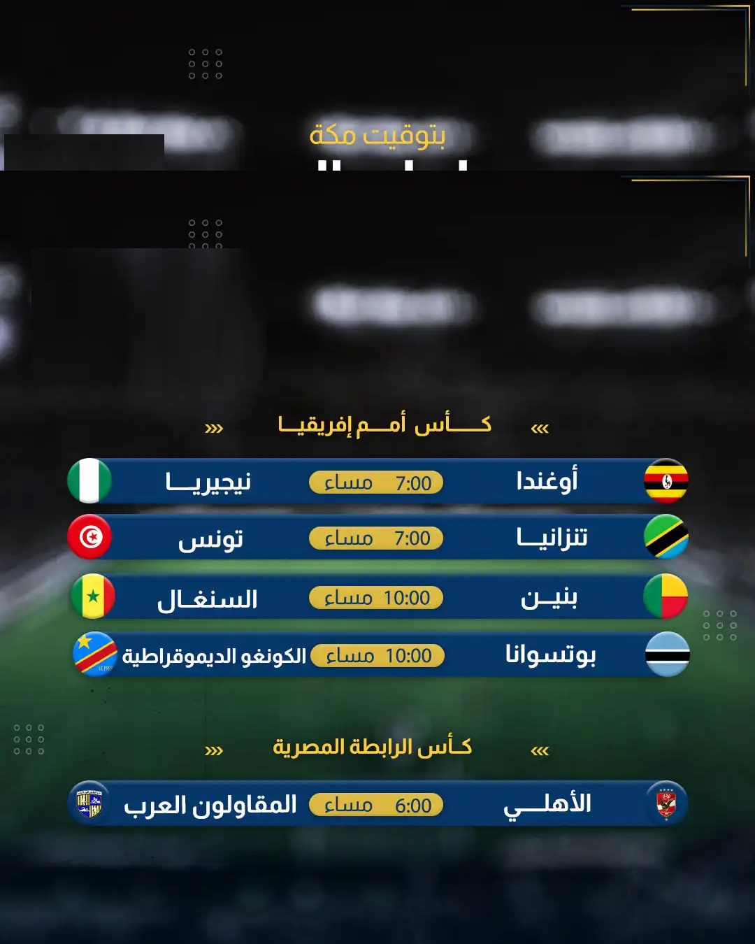 وفيما يلي مواعيد مباريات اليوم الثلاثاء 30 ديسمبر 2025 بتوقيت مكة المكرمة والقنوات الناقلة: