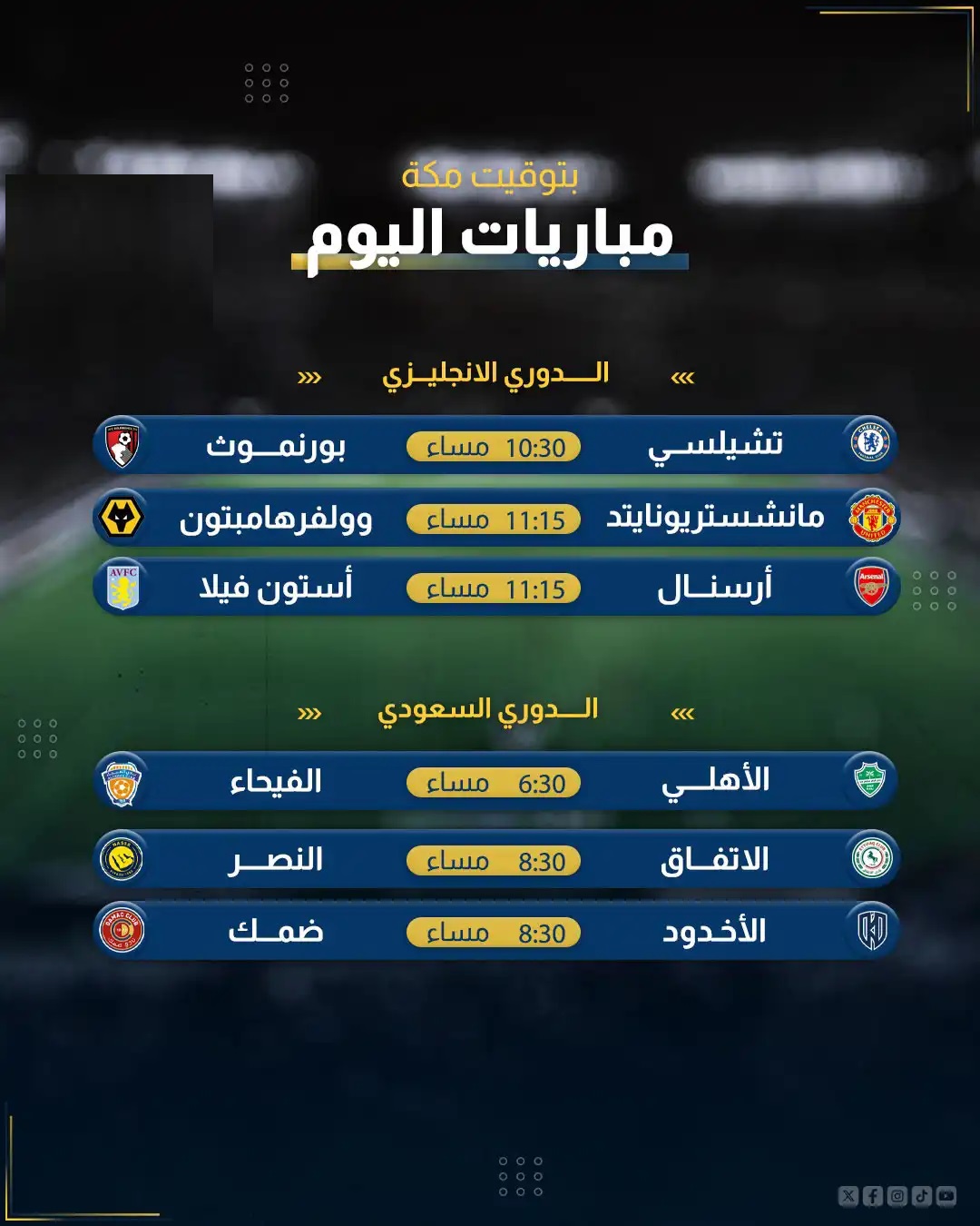 شاهد مواعيد مباريات اليوم والقنوات الناقلة آرسنال ومنتخب تونس والنصر..