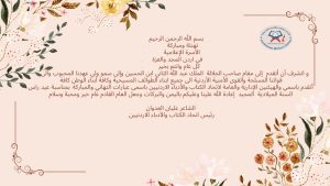 أتقدم باسمي والهيئتين الإدارية والعامة لاتحاد الكتاب والأدباء الاردنيين باسمى عبارات التهاني والمباركة. بمناسبة عيد راس السنة الميلادية المجيد إعادة الله علينا وعليكم باليمن والبركات وجعل العام القادم عام خير ومحبة وسلام