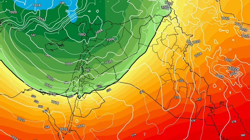 المنخفض الجوي عميق: المنخفض الجوي القادم يُصنّف بالعميق بسبب الانخفاض الكبير في قيم الضغط الجوي عند مركزه مقارنة بالمناطق المحيطة.