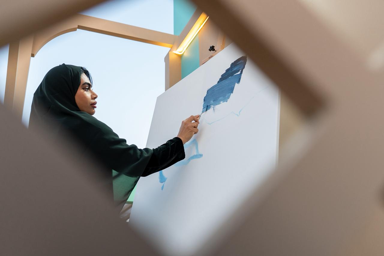 وشكّلت معالم منطقة الوثبة أحد المحاور المقترحة لأفكار الرسم، بوصفها معلمًا راسخًا في الوجدان الإماراتي، ومكانًا يحمل ذاكرة الصحراء والنخلة والعلاقة المتجذّرة بين الإنسان وبيئته. استلهم الفنانون من الوثبة ملامحها واتساع أفقها، ليحوّل كل فنان هذا الإلهام إلى قراءة بصرية خاصة، تختلف في الشكل وتتقاطع في الجوهر.