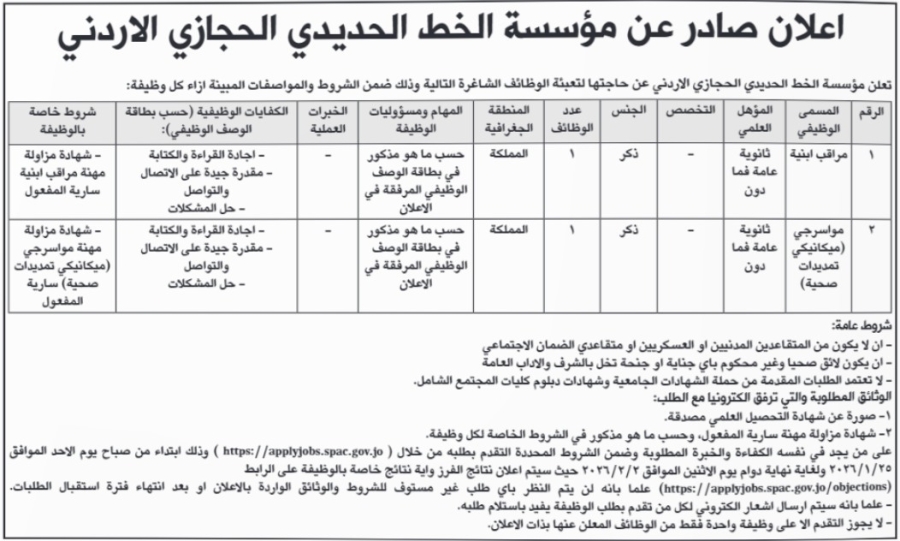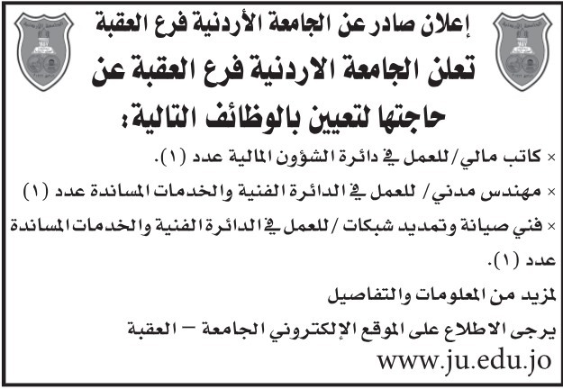 دوائر حكومية تعلن فتح باب التوظيف لوظائف شاغرة On يناير 25, 2026 Share 4٬187 المرفأ- اعلنت دوائر حكومية اليوم الاحد عن حاجتها لتعبئة وظائف شاغرة. Share 4٬187