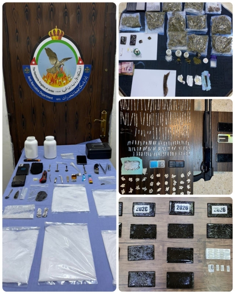 وأكّد أنّ فرق مكافحة المخدرات بالتنسيق مع مديريات الشرطة المختصّة وقوات الدرك نفذت 4 حملات أمنيّة على تجّار ومروجي المخدرات في عدّة محافظات منها معان، حيث أفضت عن إلقاء القبض على 10 مطلوبين ومروجين وتجار للمخدرات، وجرى في محافظة الزرقاء إلقاء القبض على مروجَين اثنين ضمن الحملة الأمنيّة، فيما وأُلقي القبض في حملة نفذت في محافظة عجلون على أربعة متورطين بقضايا مخدرات ، فيما دوهمت ثلاثة مواقع بحملة في لواء الشونة الجنوبية أُلقي القبض خلالها على شخصين أحدهما مصنف بالخطر متورطَين بزراعة الماريجوانا المخدرة، وضُبطت في كافّة الحملات كمّيات كبيرة من المواد المخدرة وأشتال الماريجوانا .