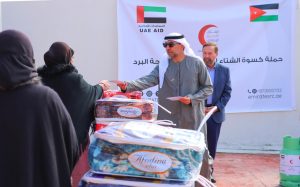 المرفأ- أشرفت سفارة دولة الإمارات في عمّان على تنفيذ حملة شتاء دافئ على الأيتام والأسر المتعففة في المملكة الأردنية الهاشمية، بتبرع من هيئة الهلال الأحمر في دولة الإمارات، وقد ساهم الهلال الأحمر الأردني بفاعلية وفق أسس منظمة في تنفيذ الحملة، وجرى تقديم حملة الشتاء الدافئ، وهي عبارة عن:( تدفئة متكاملة وبطانيات وكسوة ملابس الشتاء) على نحو 3500 مستفيد في الأردن.