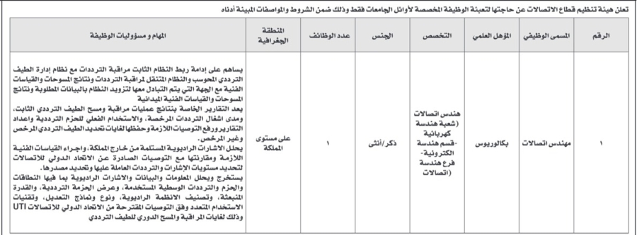 هيئة تنظيم قطاع الاتصالات تعلن حاجتها لتعبئة وظائف شاغرة