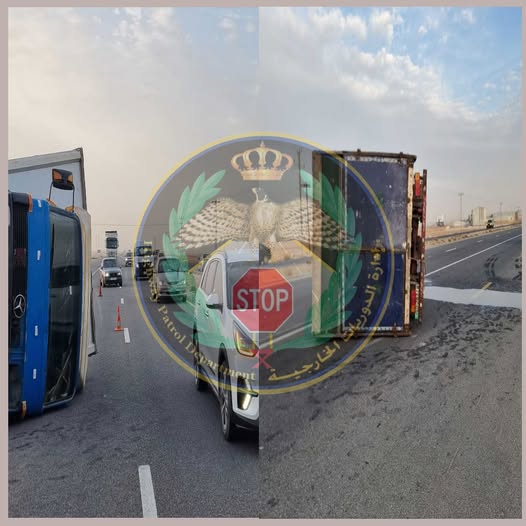 المرفأ- أعلنت الدوريات الخارجية عن تعاملها مع حادث تدهور لمركبة شحن على الطريق الصحراوي، قبل محطات ضبعة باتجاه العاصمة عمان.