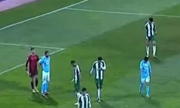 وشهدت المباراة توقفًا مؤقتًا في مناسبتين على مدار الشوطين بسبب إطلاق صافرات الإنذار، حيث غادر اللاعبون أرضية الملعب إلى غرفهم قبل العودة لاستكمال اللقاء بعد إعلان الأمان.
