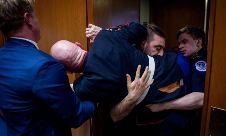 وأظهر مقطع فيديو نشره مراسل شبكة “سي بي إس نيوز” آلان هي، شيهي، وهو عنصر سابق في القوات الخاصة للبحرية الأمريكية (سيلز)، وهو يساعد شرطة الكابيتول في إخراج المحارب القديم برايان ماكغينيس من جلسة لجنة القوات المسلحة حول جاهزية الجيش الأمريكي.